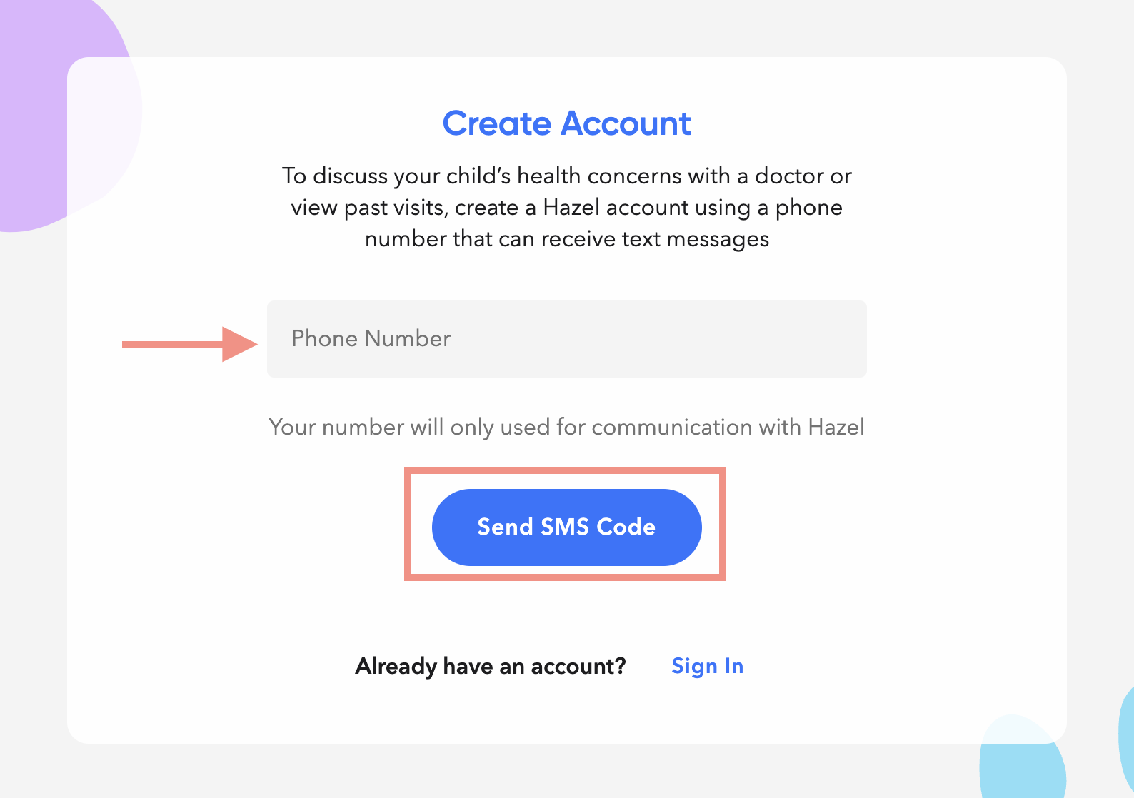 Navigate to my.hazel.co/patient and click the "Sign up now" button