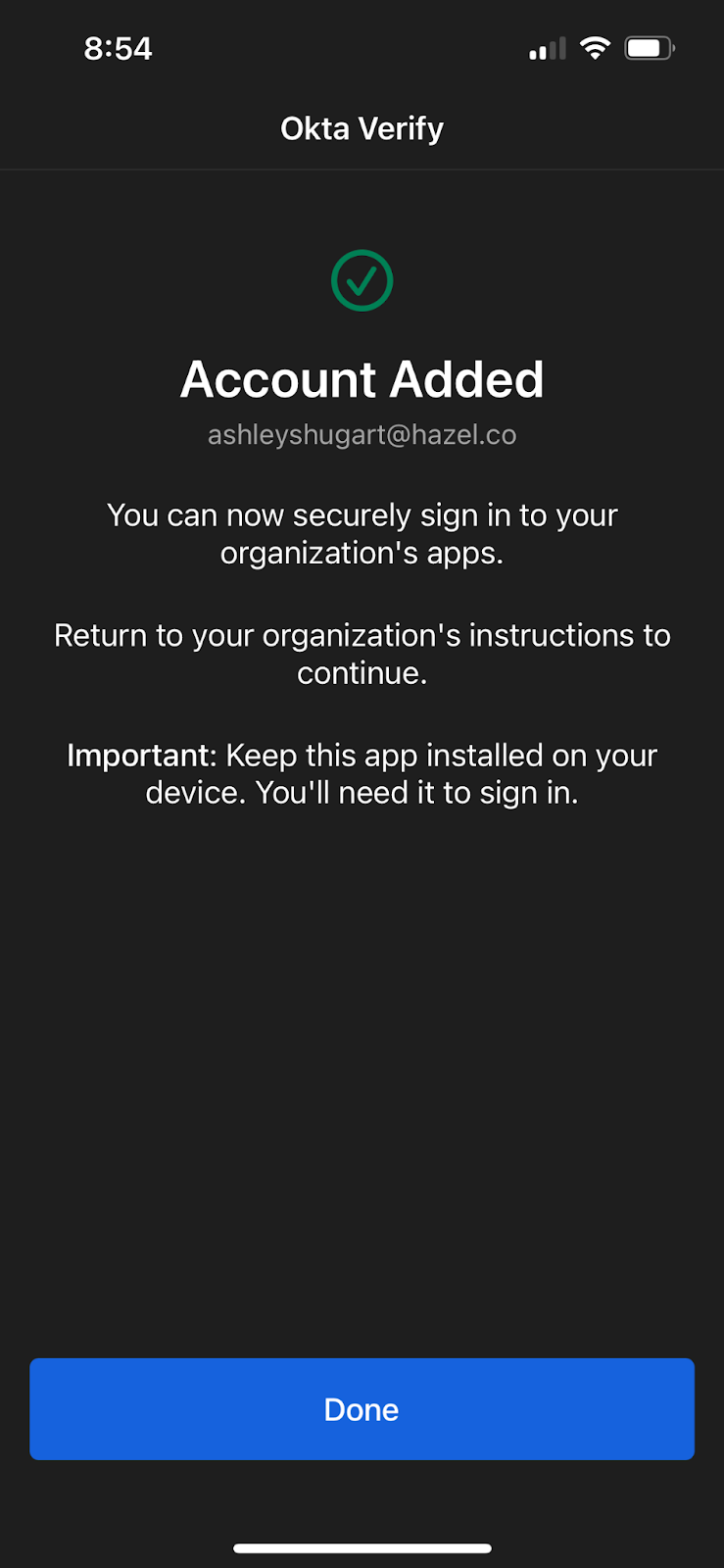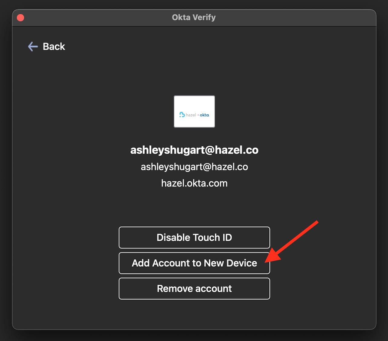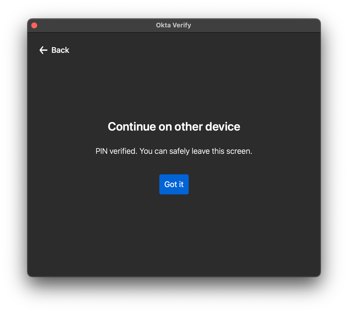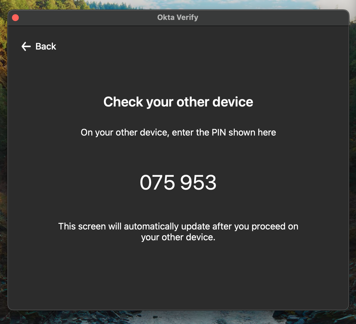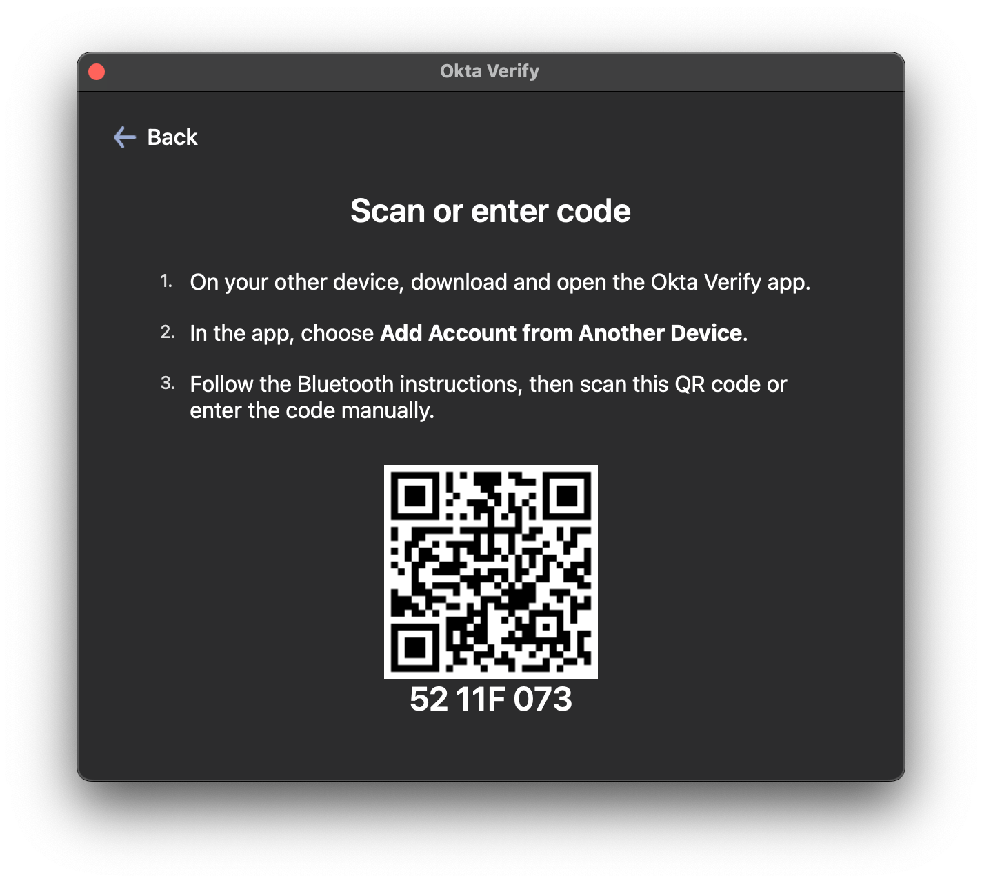 - Next, you'll be taken back to the Okta Verify window
