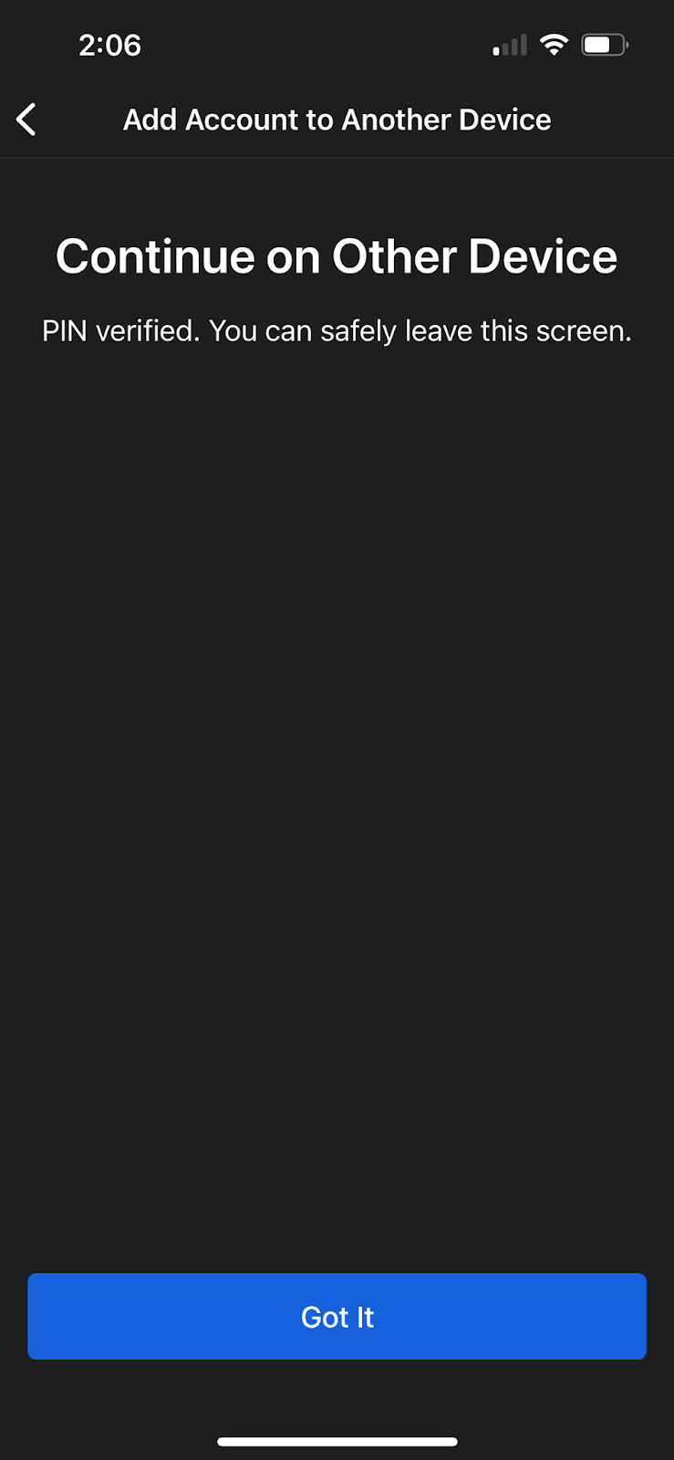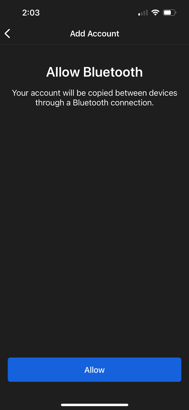 Select “Add Account from Another Device”