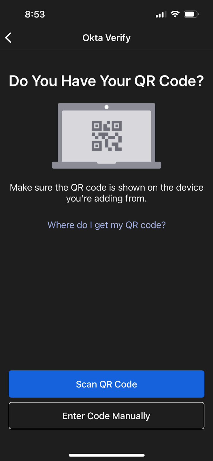 - Now Open the Okta Verify Application on your other device, the one you already have Okta Verify on. (This is probably your phone)