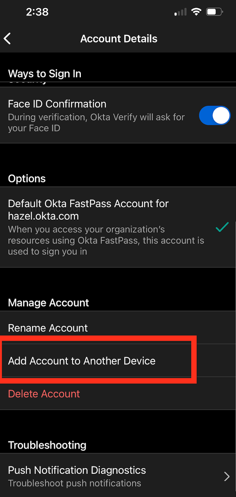 Scroll down and select “Add Account to Another Device”
