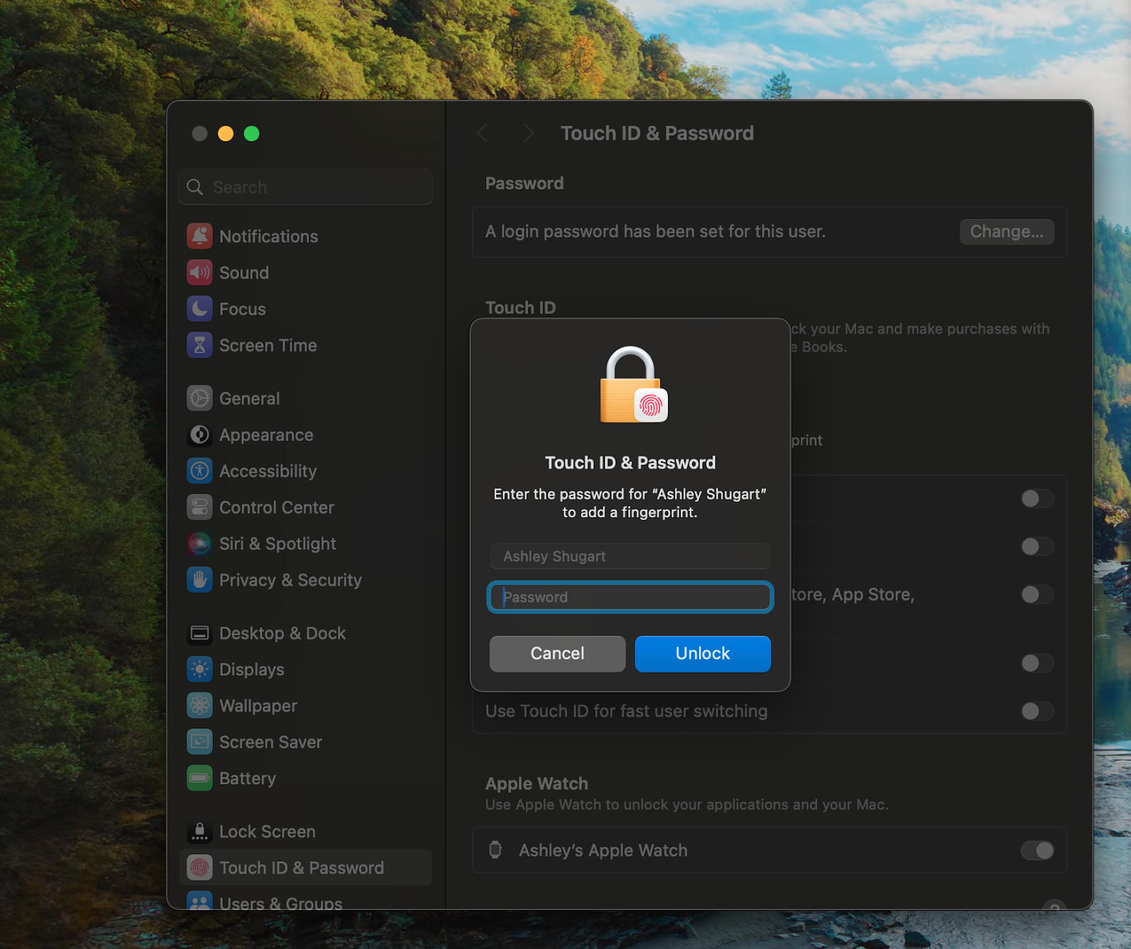 Input computer password to add fingerprint