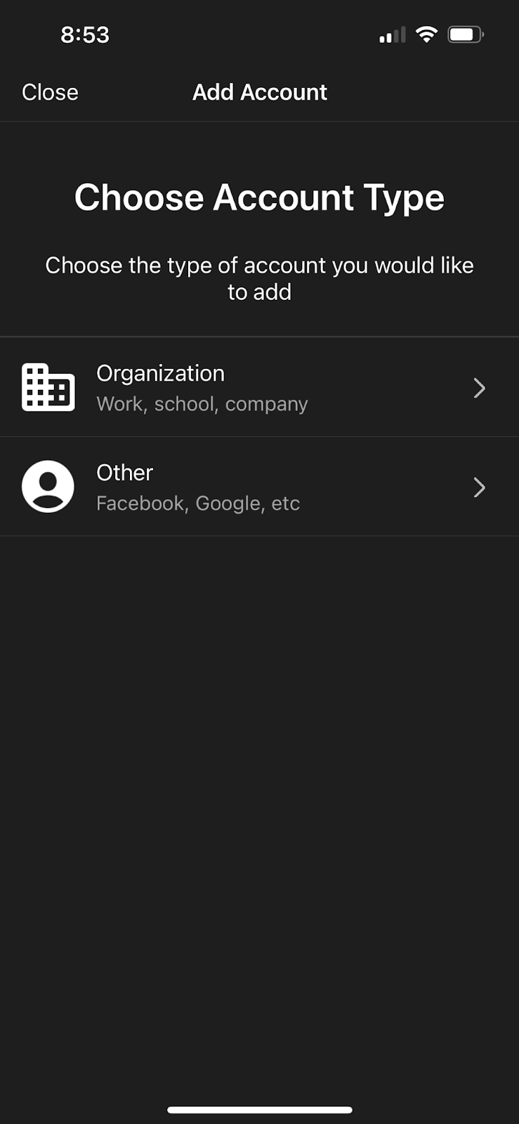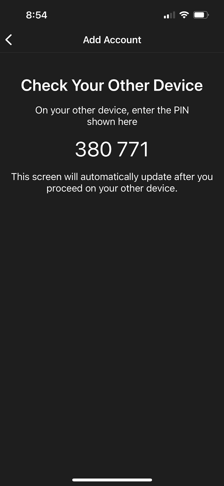 - Choose "Add account from another device"