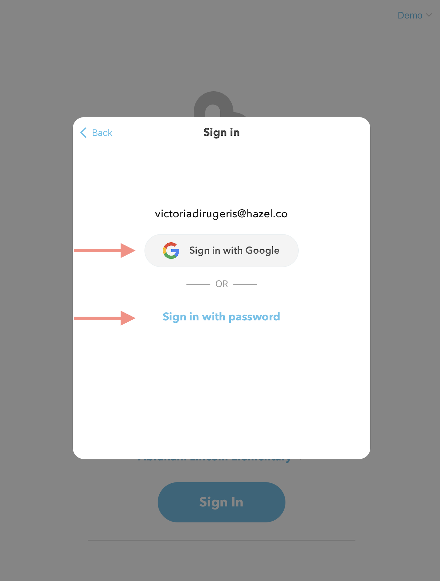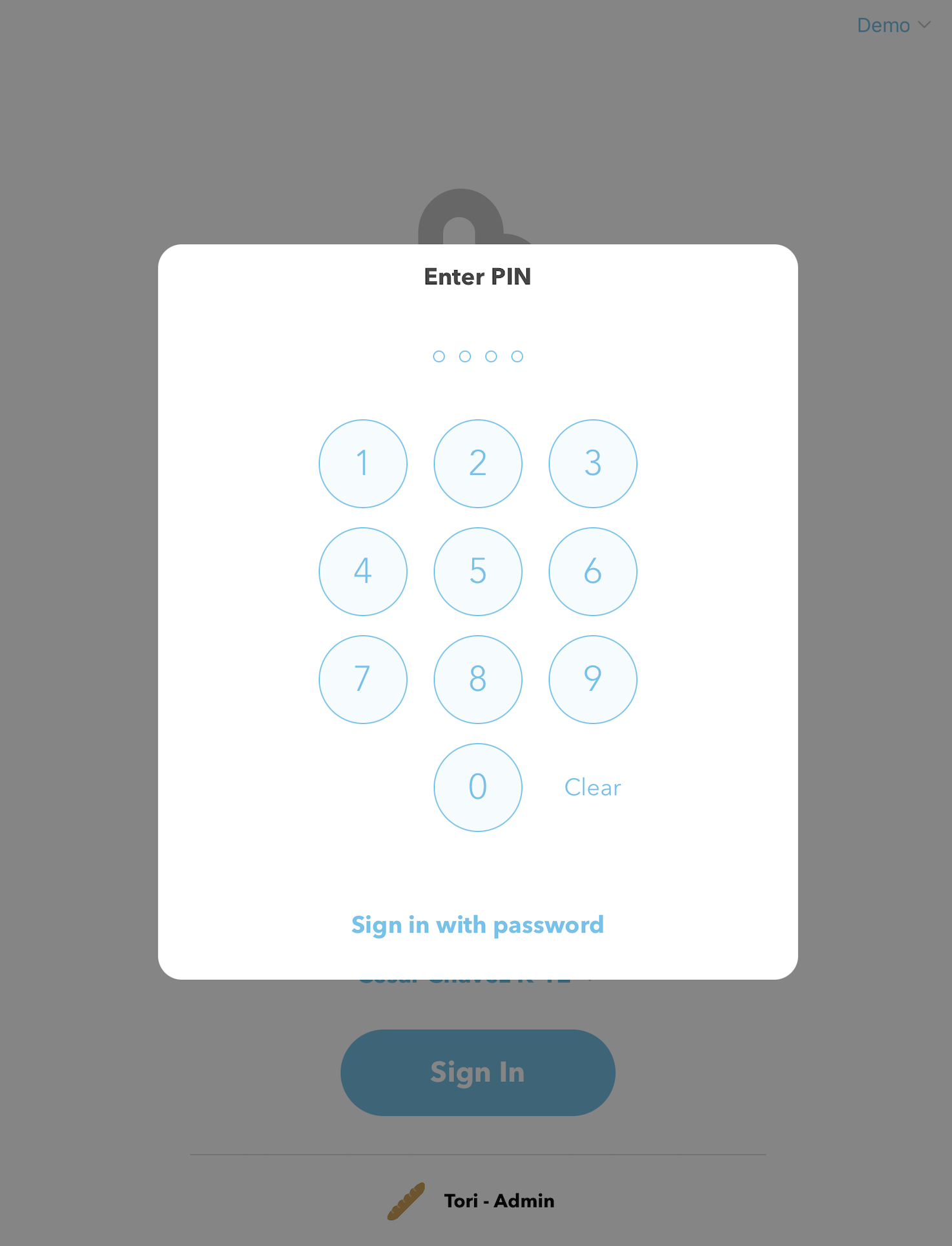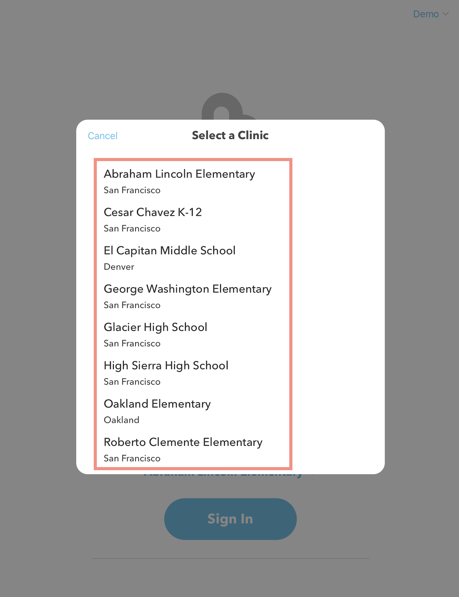From the home screen, tap on the school / clinic name dropdown menu above the blue Sign In button. DO NOT CLICK THE BLUE SIGN IN BUTTON!!
